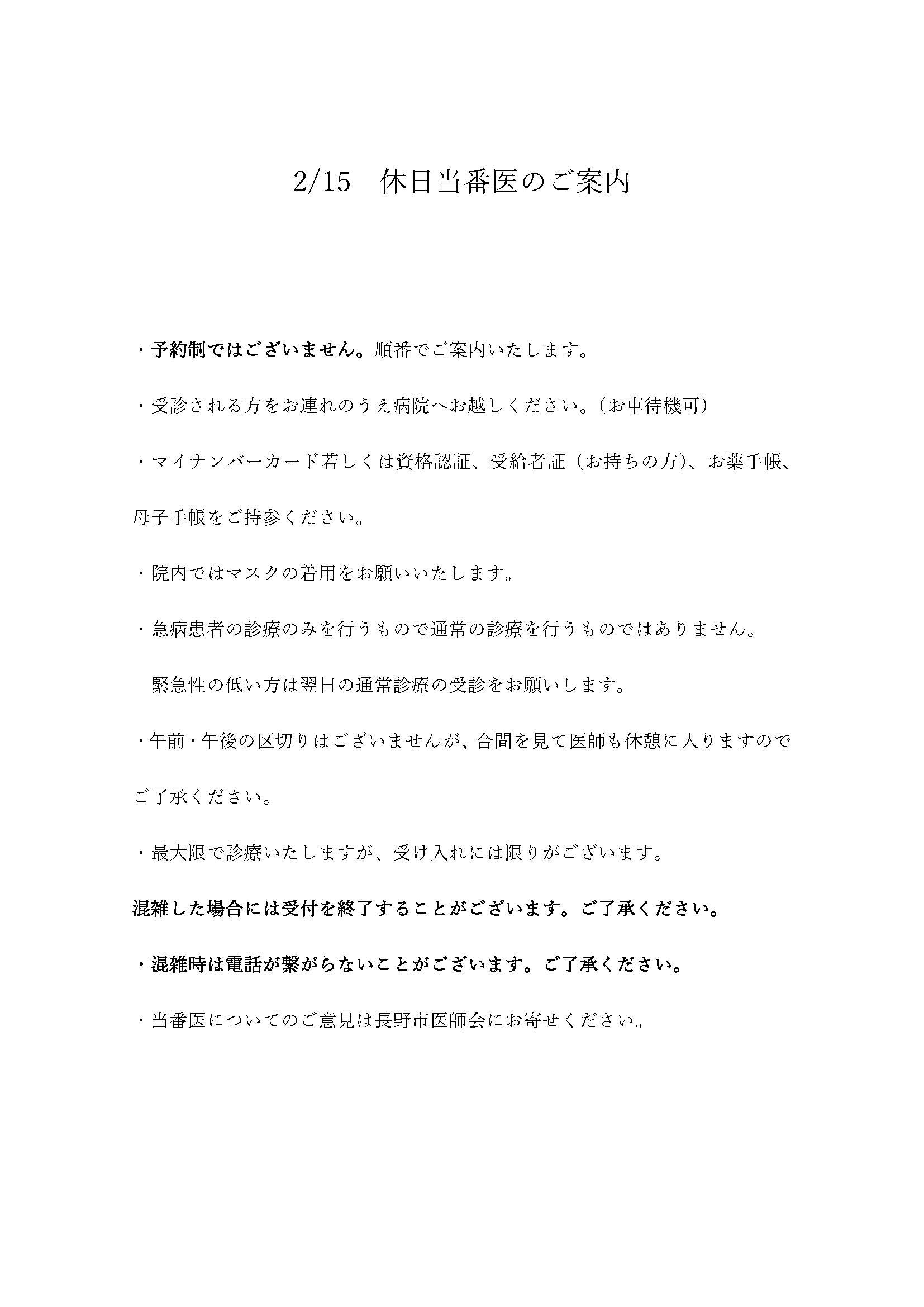 ※2/3(火)午後は小児科(中学生まで)のみの対応となります※
